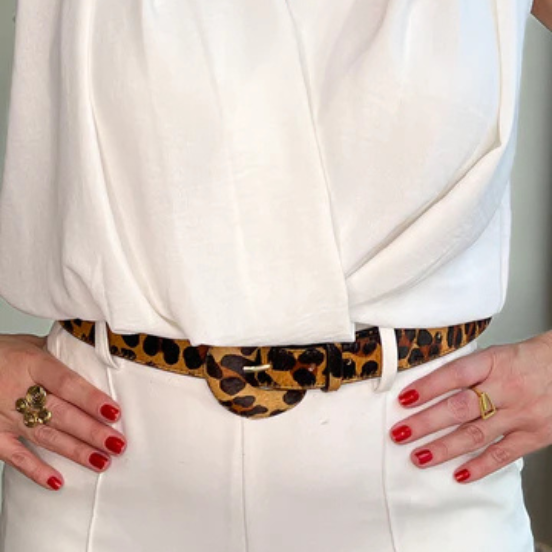 Cinto Couro Ana (Onça com Fivela Meia Lua). Em até 4 x