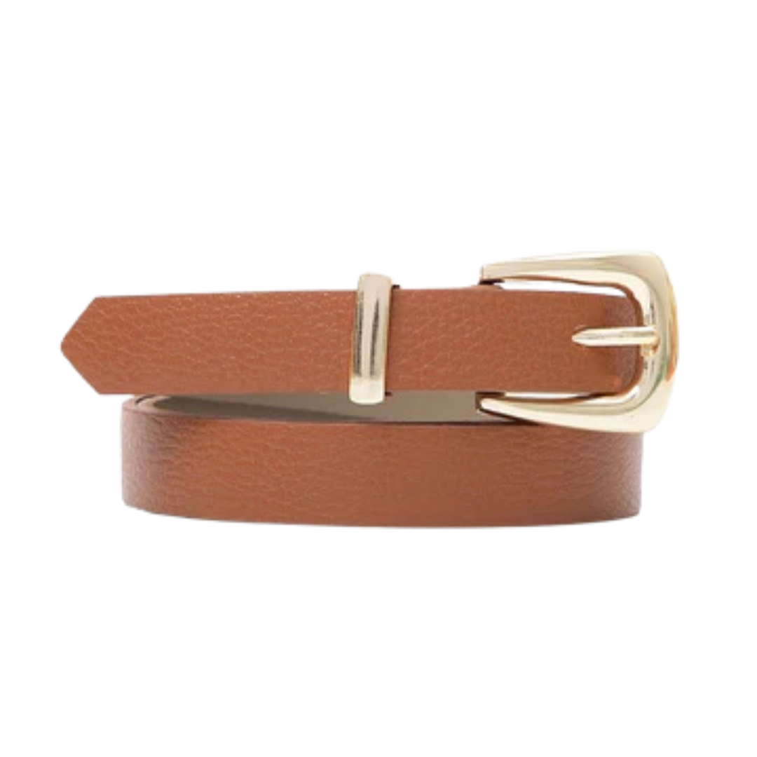 Cinto Couro Bianca (Caramelo com Fivela Dourada). Em até 4 x