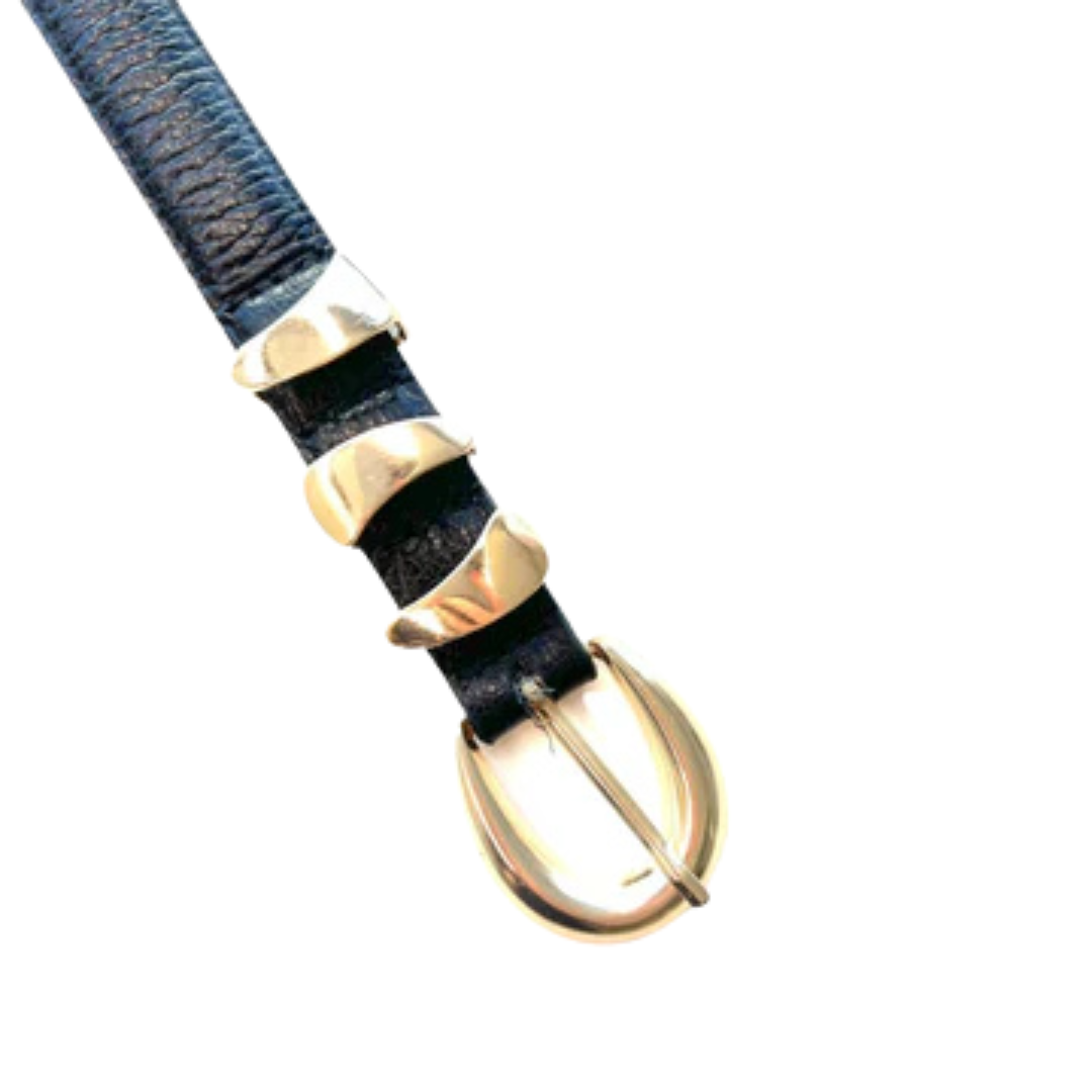 Cinto Couro Rebeca (Preto com Fivela e Passantes Dourados). Em até 4x.