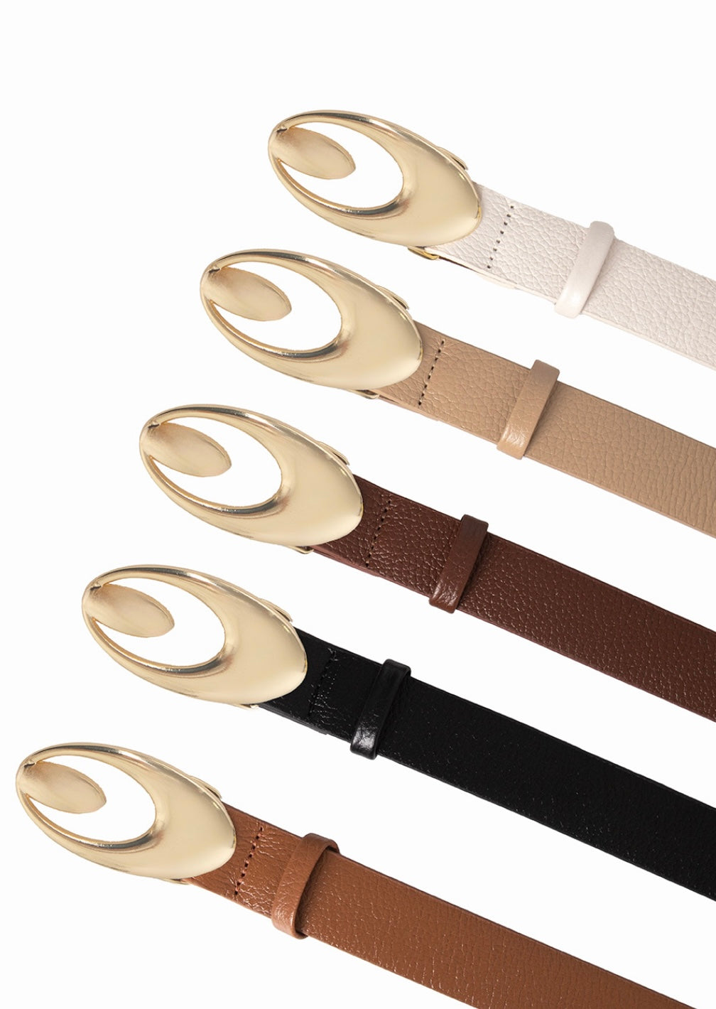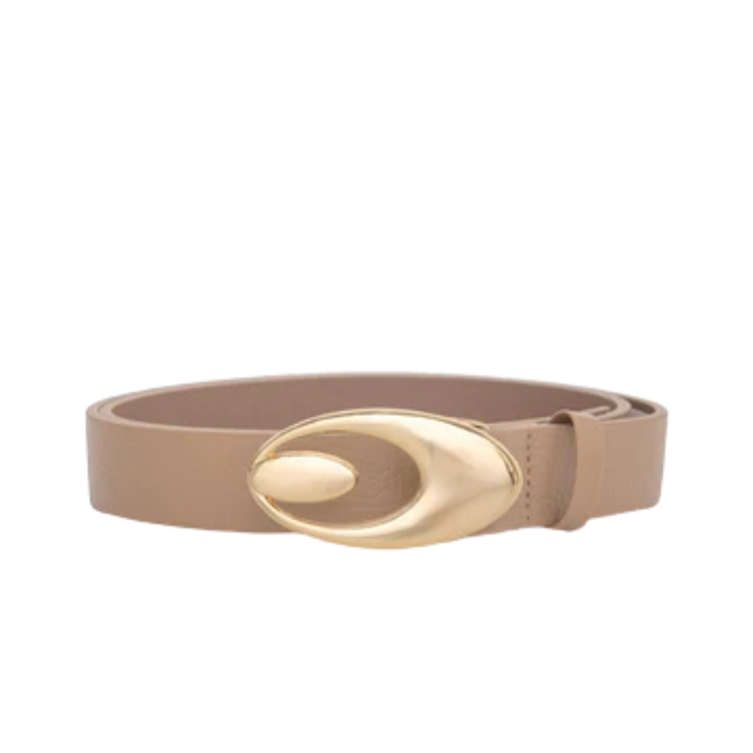 Cinto Couro Jana (Nude com Fivela Dourada). Em até 4x
