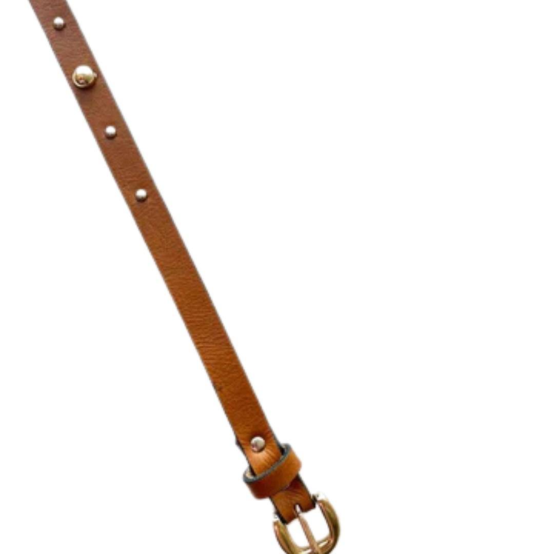 Cinto Couro Marjorie (Caramelo com detalhes e Fivela Dourada). Em até 4 x.