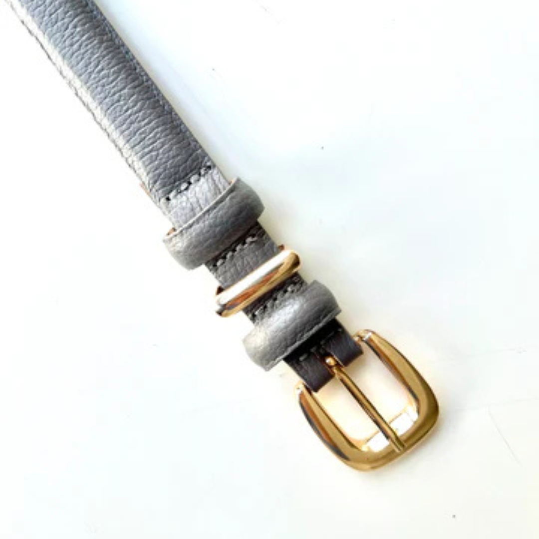 Cinto Couro Silvia (Cinza com Fivela Dourada). Em até 4x.